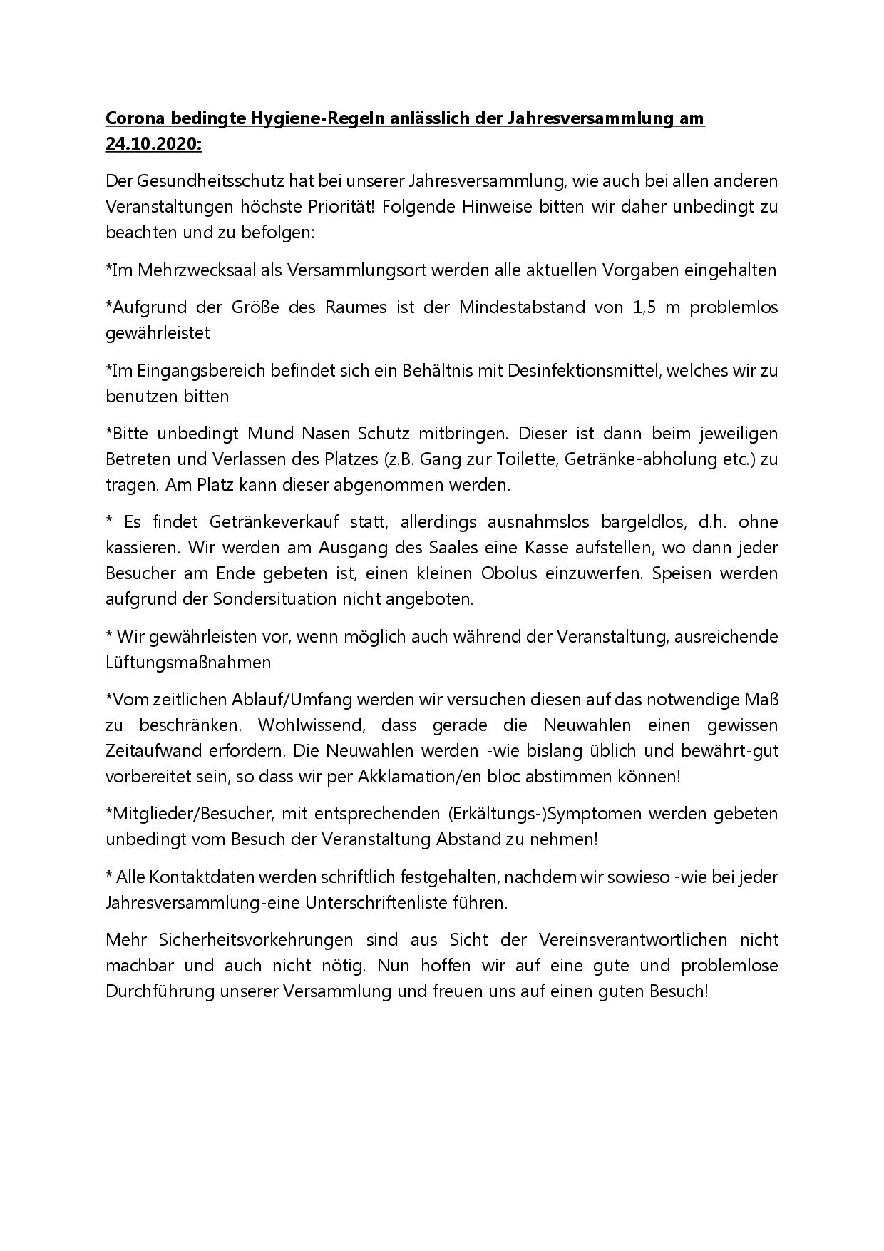Aufgrund der aktuellen Entwicklung rund um das Corona-Virus, haben wir uns dazu entschieden die verschobene Jahreshauptversammlung am 24.10.2020 ab-zuhalten.